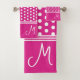 Hot Pink Monogram Polka Dot Spotty Bath Towel Set