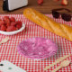 Hot Pink Multi-Texture Square Weave Pattern Paper Plate