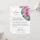 This custom welcome card provides a means to welcome your guests to a destination wedding or weekend wedding festivities. The text template has placeholder text to include a thank you message and activities and schedules for the weekend. A colourful Monstera leaf with vibrant hot pink orchids adorns the upper corner of the design to add tropical flair to the design. Personalise the text as you wish with your specific details. You can add or remove lines of text as needed. To move the text around or add more text, choose "customise further" at the bottom of the design template.