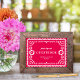 This elegant yet modern papel picado inspired wedding reception sign features a beautiful ornate frame in white, a colourful hot pink background, and festive typography. Customise this template as a table sign for favours, guestbook, menu, buffet, etc. The default size is 5" x 7" which fits great in a standard size photo frame that can be placed on a table.