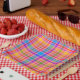 A modern fun checked plaid in a bright multicolored pattern. Hot pink, red, yellow, green, blue, orange colours inspired by the popular Madras plaid prints of the '50s