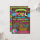 Pool birthday bash combined party invitation, hot pink, purple, teal, yellow and lime colour scheme with a faux wood background suitable for any age. Add your own wording into the template, to more customisation (font colour, font style, background), click on personalise, scroll down and click on link "click to customise further":