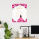This elegant and glamourous Quinceañera welcome sign features a beautiful princess with dark hair in a hot pink ball gown. The text combines handwritten script and modern sans serif fonts for a classy and sophisticated look. The floral arrangements and gold confetti create the perfect blend of rustic and chic.