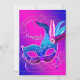 Beautiful purple and hot pink masquerade party invitation with pretty teal blue purple hot pink and royal blue feather mask on a gorgeous royal blue and hot pink background. This elegant hot pink purple and royal blue masquerade party invitation is easily customised for your event by simply adding your event details, font style, font size & colour, and wording. This is a printed design with no real glitter, feathers, jewels, etc.