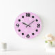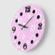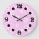 Hot pink retro polka dots with floral pattern large clock