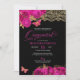 Hot Pink Roses and Lace Butterfly Quinceañera Invitation