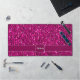 Hot pink shiny glitter sparkles Monogram Desk Mat