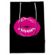 Hot Pink Shiny Lips on Black Medium Gift Bag
