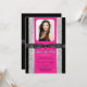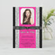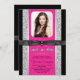 Sweet 16 party invitation with pretty hot pink on an elegant black and silver glitter background with beautiful shiny black bow. This beautiful hot pink glitter sweet sixteen birthday party invitation is easily customised with your photo and event details in the font style and colour, and wording of your choice. You can also change the background colour on this elegant hot pink graduation announcement.