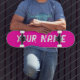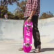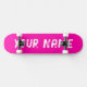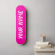 Skateboard deck featuring a bold hot pink design with customisable name space. Perfect for street skating, tricks, or as a fun and personalised gift for skateboard lovers.