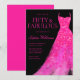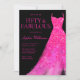 Hot Pink Sparkle Gown & Black 50th Birthday Party Invitation