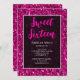 Hot pink sparkles glitter Sweet 16 elegant script Invitation