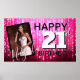 Hot Pink Sparkles| Monogram| AGE| Photo Birthday Poster