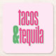 It's time for tacos and tequila! This pink and green coaster is perfect for a birthday, a bachelorette party, or a bridal shower. Part of the TACOS & TEQUILA COLLECTION.