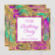 Hot pink teal purple Elite Gold Birthday Party Invitation