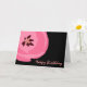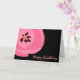 A birthday card featuring an image of a hot pink tulip at left over a black background. Pink text at right says "Happy Birthday." Blank inside.