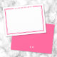 Add a personal touch to your stationery with this clean and modern note card. The front features a white background with a classic double border in hot pink and has space to display your full name in a timeless serif font. The design is simple but polished, offering a versatile look that works for any occasion. On the back, a white initial monogram adds a subtle detail against the solid hot pink background for a bold contrast.