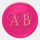 Hot Pink Two Hearts Intertwined Monogram Wedding Classic Round Sticker