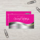 Hot Pink Wavy Silver Decor with Initials QR Code Business Card