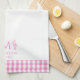 hot pink and white gingham,rustic farmhouse custom monogram,personalised customised kitchen towel,personal name check pattern,girly checked chequered dishcloth,light add your own text,bright family name surname,pastel country initialled initial,classic traditional stylish chef,countryside vintage monogrammed cook
