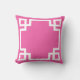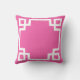 Hot Pink White Greek Key Cushion