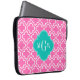 Hot Pink White Moroccan #6 Teal 3 Initial Monogram Laptop Sleeve
