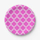 Hot Pink White Moroccan Quatrefoil Pattern #5 Paper Plate