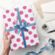 Hot Pink White Polka Dots Pattern Wrapping Paper