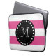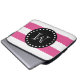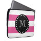 Hot Pink White Stripes Pattern, Black Monogram Laptop Sleeve