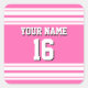 Hot Pink White Team Jersey Custom Number Name Square Sticker