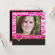 Hot pink, white zebra & heart 20th birthday photo invitation