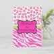 Hot Pink White Zebra Leopard 21st Birthday Party Invitation