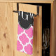 Hot Pink Wt Moroccan #5 Black 3 Initial Monogram Tea Towel