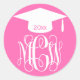 Hot Pink Wt Vine Script Monogram Graduation DIY BG Classic Round Sticker