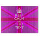 Your personalised Keep Calm saying on a vibrant hot pink union jack decor. A personalised Keep Calm style saying on a one of a kind gift. Humourous or whimsical try on your creative words on two editable lines of text. Remember to use CAPITAL letters for best results.