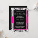 A sassy hot pink and black zebra design is featured on this trendy birthday party invitation.