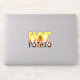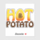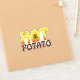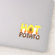 Hot potato with a little brown spud surrounded by flames peeking out from the O in Hot. The word hot is in a yellow to orange gradient and the word potato is in brown.