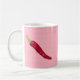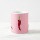 Mug that has a hot red pepper design on each side and one in the centre. Also has a small chequered background with a border around it. Choose the type of mug you would like this design on. Makes a great gift!