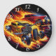 Hot rods racing through a fiery night landscape large clock