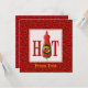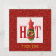 HOT letters with the O made with a chily pepper sauce bottle over red seamless background.
