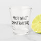 This custom shot glass features "hot shot contractor" in decorative serif typography. Makes a funny gift for a general contractor, home builder, or commercial developer, and with editable text, you can customise it.