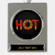 Hot with the letter O made of a flame circle with chilli peppers.