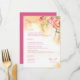 Hot Pink Freesia stem is watercolored on a tropical sunset wash of texture. Graceful typography elegantly personalised with the couple's initials and wedding date. Fill in your own menu items, initials, and date.