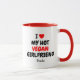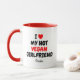 This "I love my hot vegan girlfriend" mug features a quote and a custom name.