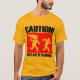 Funny sign Caution ! Zombies maybe flammable, Running man chased by burning zombies with knife