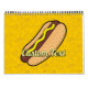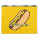 Cartoon illustration of hotdog. Junk food outline icons yellow pattern background. Custom text.