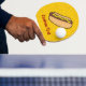 Hot dog icon. Junk food outline icons yellow pattern background. Custom text.
