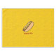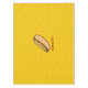 Cartoon illustration of hotdog. Junk food outline icons yellow pattern background. Custom text.