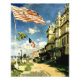 The "Hotel des Roches Noires" painting captures a tranquil scene along the picturesque Normandy coastline, specifically in the seaside town of Trouville-sur-Mer. The scene portrays the iconic Hotel des Roches Noires nestled amidst the cliffs and sandy beaches. The painting exudes a sense of serenity and leisure, with figures leisurely strolling along the shore and enjoying the sea air. The vibrant colours and dynamic brushwork convey the play of light and shadow on the water and the surrounding landscape, creating a captivating sense of movement and atmosphere. With his masterful technique, the artist invites viewers to immerse themselves in the timeless beauty of this quintessential seaside retreat.