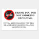 Hotel room no smoking sign. Thank you for not smoking. Up to a $$$ fee will be added for smoking in a non smoking room. Custom fine.